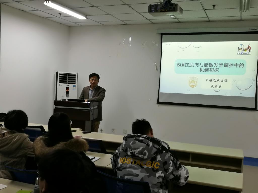 应新2会员管理端官方网站邀请,中国农业大学孟庆勇教授于2019年12月13日上午到学院进行了题为“Islr在肌肉与脂肪发育调控中的机制初探”的学术报告。报告由周光斌教授主持,二十余名动物科学相关专业的硕士研究生参加。